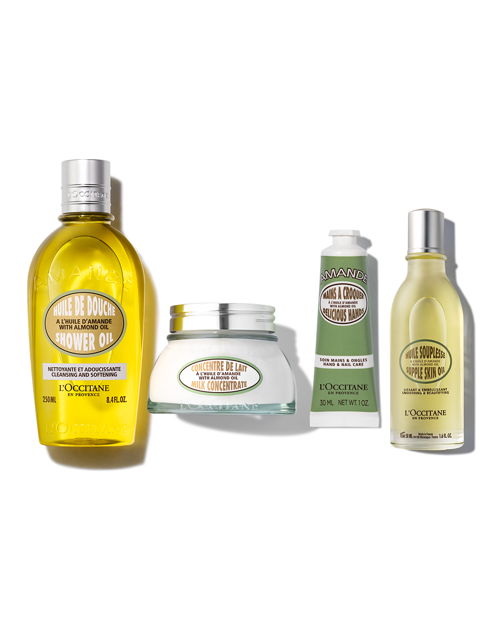 Discover soft and supple feeling skin with a collection infused with sweet almond oil.